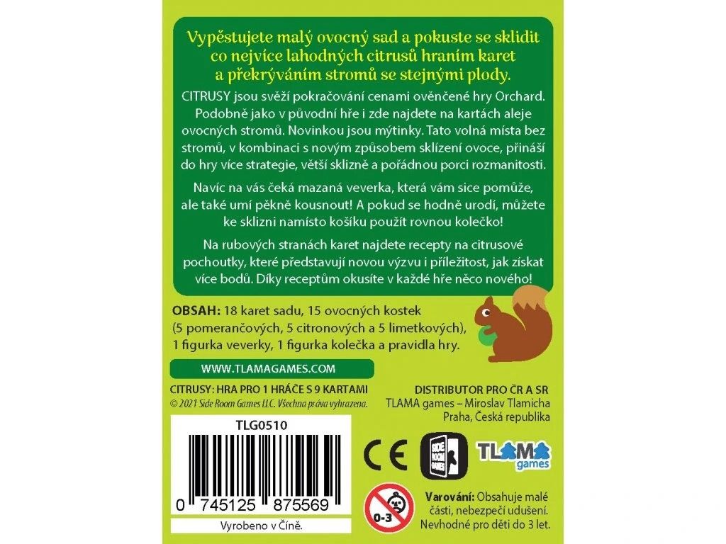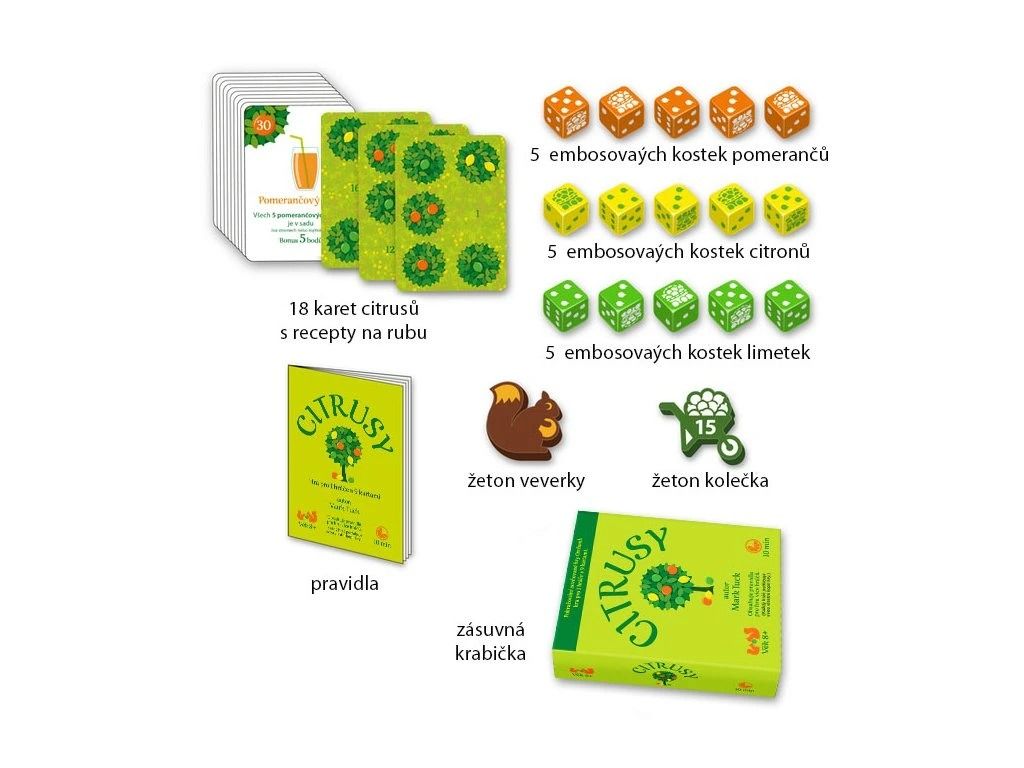 Na zadných stranách kariet nájdete recepty na citrusové pochúťky, ktoré prinášajú novú výzvu a príležitosť, ako získať viac bodov. Vďaka receptom ochutnáte v každej hre niečo nové!