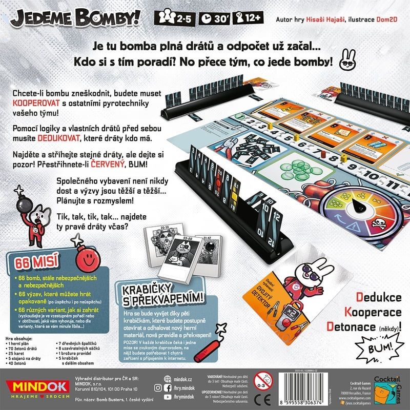V príjemnej dedukčnej kooperatívnej hre Jedeme bomby! sa 2-5 hráči stávajú členmi pyrotechnického tímu, ktorý je v tréningu a postupne prechádza aj na náročnejšie misie. Podarí sa vám prestrihnúť všetky káble a zneškodniť bombu skôr, ako vybuchne a vy prídete o život?