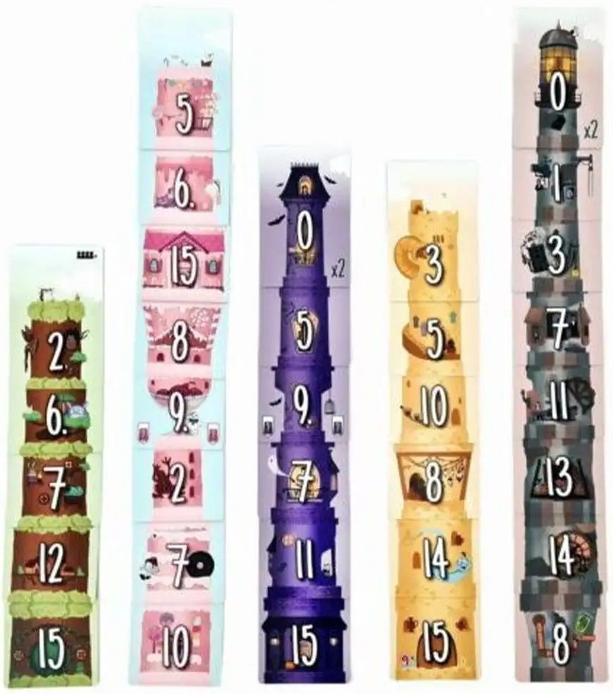 Hra 5 věží je príjemná rodinná kartovka, v ktorej sa snažíte postaviť čo najveľkolepejšie veže! Tieto vám zabezpečia priehršť bodov, ale dávajte pozor! Stavba veží nie je jednoduchá a keď získate kúsky, ktoré nebudete vedieť umiestniť, body naopak strácate.